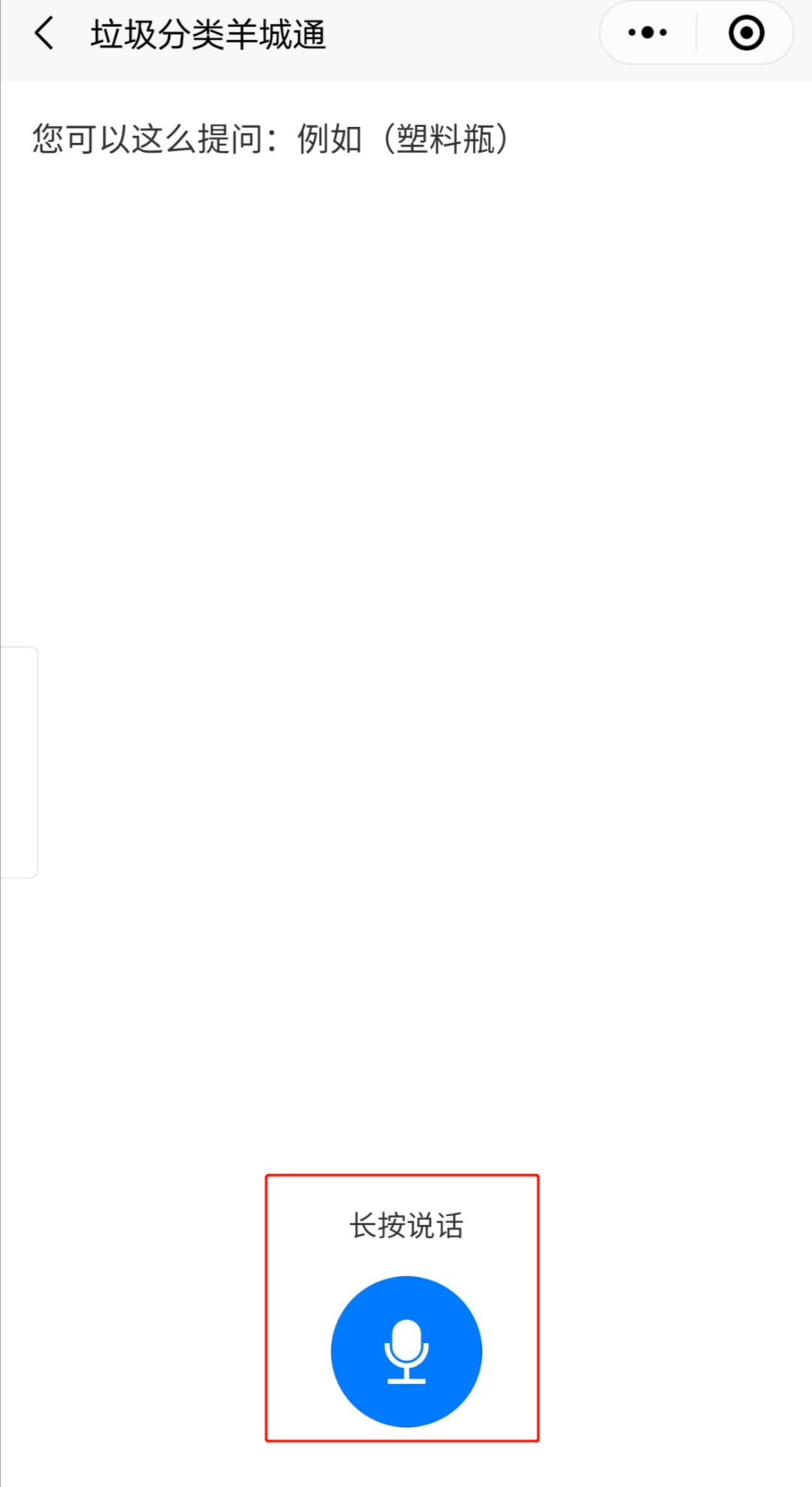 2、进入识别界面,长按下方说话按钮,说出你想分类的物品