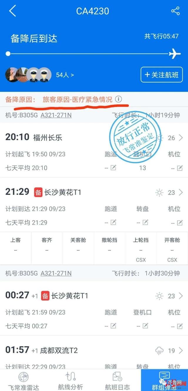 有博主报料称,9月23日从福州飞往长沙的CA4230航班,因有乘客疑似在卫生间自杀,该航班紧急备降在长沙黄花机场。