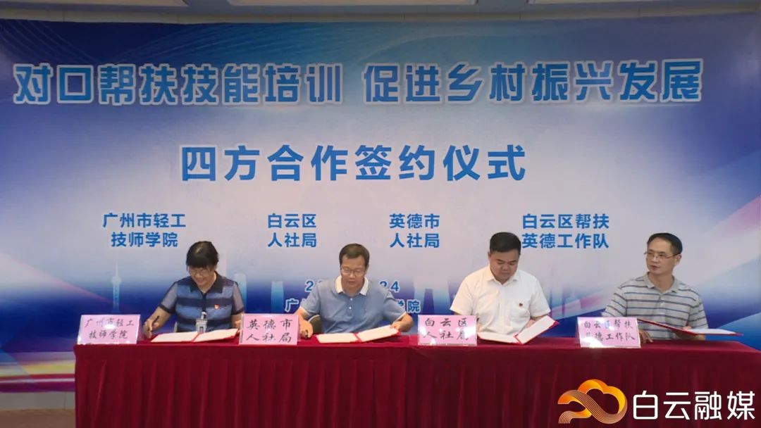 脱贫路上 搭把手,一起走 近日 白云区与英德签订两地四方协议 推进精准扶贫 9月24日,白云区和英德市两地人力资源社会保障局、广州市轻工技师学院、白云区帮扶英德工作队签订四方合作框架协议,共同推动对英德技能培训,促进乡村振兴发展。 ▲ 四方合作签约仪式 签约四方将进行深度合作 ↓↓↓ 两地四方将在推动培训就业载体打造、就业服务优化、基层人才供给等人力资源开发方面开展深度合作。 ▲ 家具实训基地 未来将以“对口帮扶、资源共享、务实高效、共同发展”为合作原则,明确“提供智力支持、助力基地建设、扩大劳务协作”的合作方向,以“粤菜师傅”、“南粤家政”工程为主要抓手,帮扶英德开展“茶菜”开发专项能力培训,共建“粤菜师傅”培训基地等“粤菜师傅”工程项目。 ▲ 粤菜师傅培训基地 两地还将对接共建家政超市、打造就业平台畅通劳务输出等“南粤家政”协作项目。 白云对口帮扶英德 就业扶贫、技能扶贫效果明显 英德市人力资源社会保障局局长陈亦康介绍,去年,英德市共派出了30名有基本烹饪基础的劳动者到白云区参加为期一个月的“粤菜师傅”培训,经过培训后,这30人有的进了当地知名酒店工作,有的选择自己开店,效果非常明显,他们也意识到了服务业对就业的推动作用。 ▲ 粤菜师傅培训基地 即使今年疫情期间,白云区也对英德输送了5800多个就业岗位,成功就业600多人。目前,当地随着城市不断发展,家政服务需求越来越大,但是当地家政服务产业还刚刚起步,需要白云的学校和企业提供支持。 此外 “粤菜师傅”工程还在不断研发 融入地区特色的菜式 之前推出的沙田柠檬、雄伟杨桃等特色菜 备受好评 ▲ 沙田柠檬特色菜 ▲ 雄伟杨桃特色菜 目前 该工程正助力研发英德红茶菜 以英德红茶为“主角”的“茶菜”系列 现已经研发出了两菜一饮品 即将推出,敬请期待~
