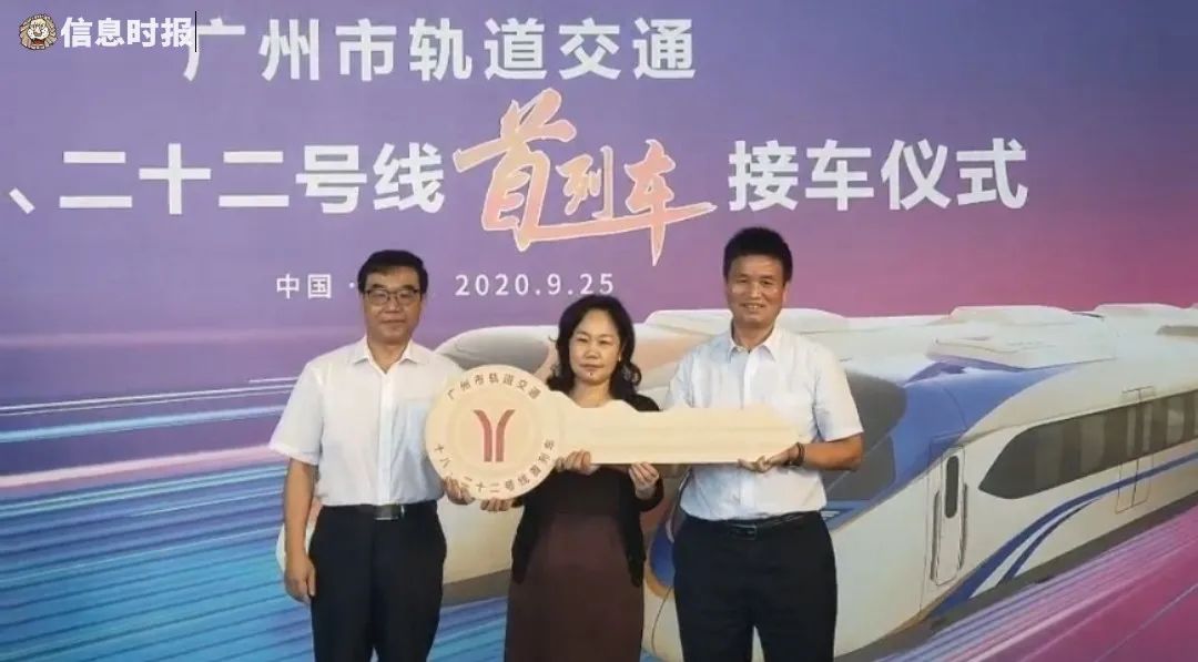 25日上午,在陈头岗停车场的交付仪式上,广州地铁集团有限公司代表从中车株洲电力机车有限公司代表的手上接过钥匙,标志着十八、二十二号线首列车顺利完成交付,这是广州地铁史上也是粤港澳大湾区首台时速160公里的地铁列车。