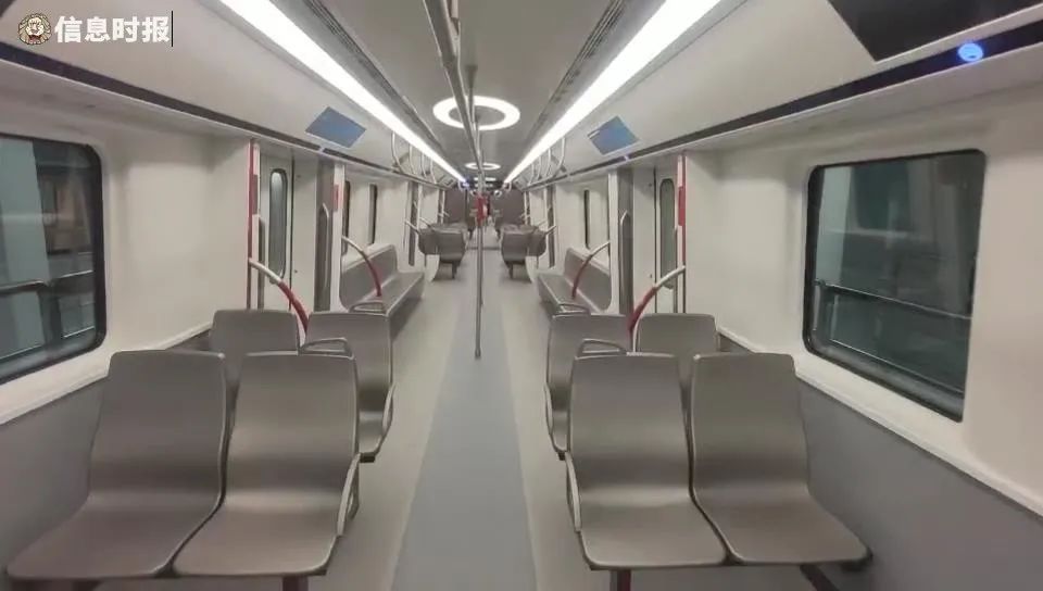 登上列车后,记者发现车厢里既包含广州地铁特征的元素,又融入了高铁动车组的特点。客室内部延续简约现代、通透明亮的风格,座椅采用横纵结合布置,深空灰不锈钢座椅搭配地铁红;