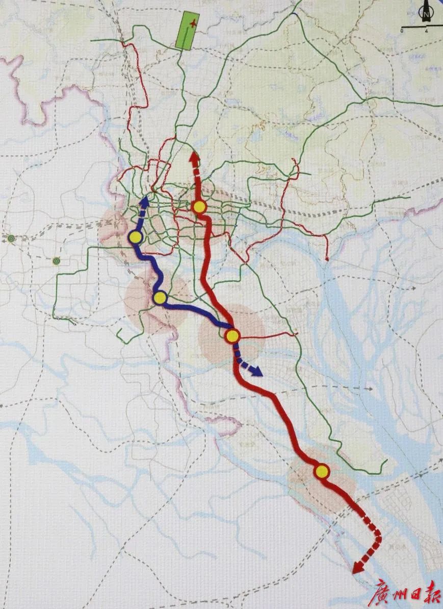 作为广州市轨道交通线网中的两条市域快线,十八号线自万顷沙至广州东站,经南沙区、番禺区、海珠区及天河区,全长61.3km,设站9座,换乘站8座,设万顷沙车辆段一座,陇枕停车场一座;二十二号线自万顷沙至白鹅潭,其中,番禺广场至白鹅潭段线路长30.8km,设站8座,换乘站4座,设陈头岗停车场一座。