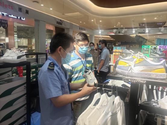 执法人员在永平安华汇商场内查到售卖假冒“PUMA”服饰的临时档口