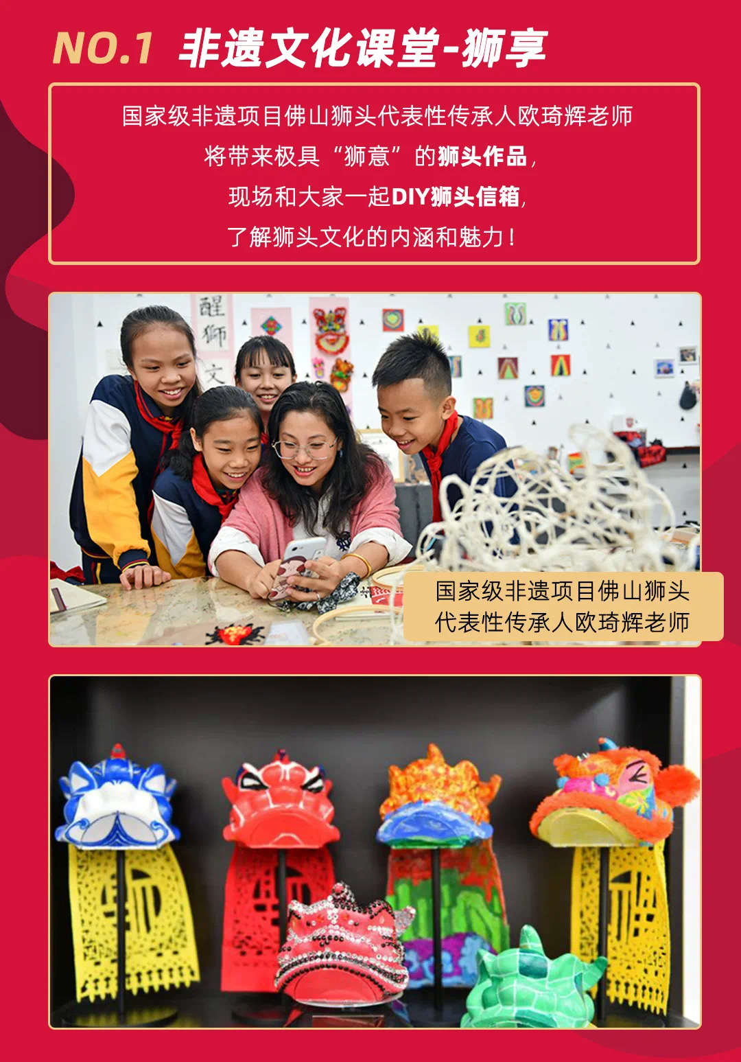 同时,现场还将举办非遗文化课堂——狮头制作、广式宫灯等,适合一家大小亲子游。
