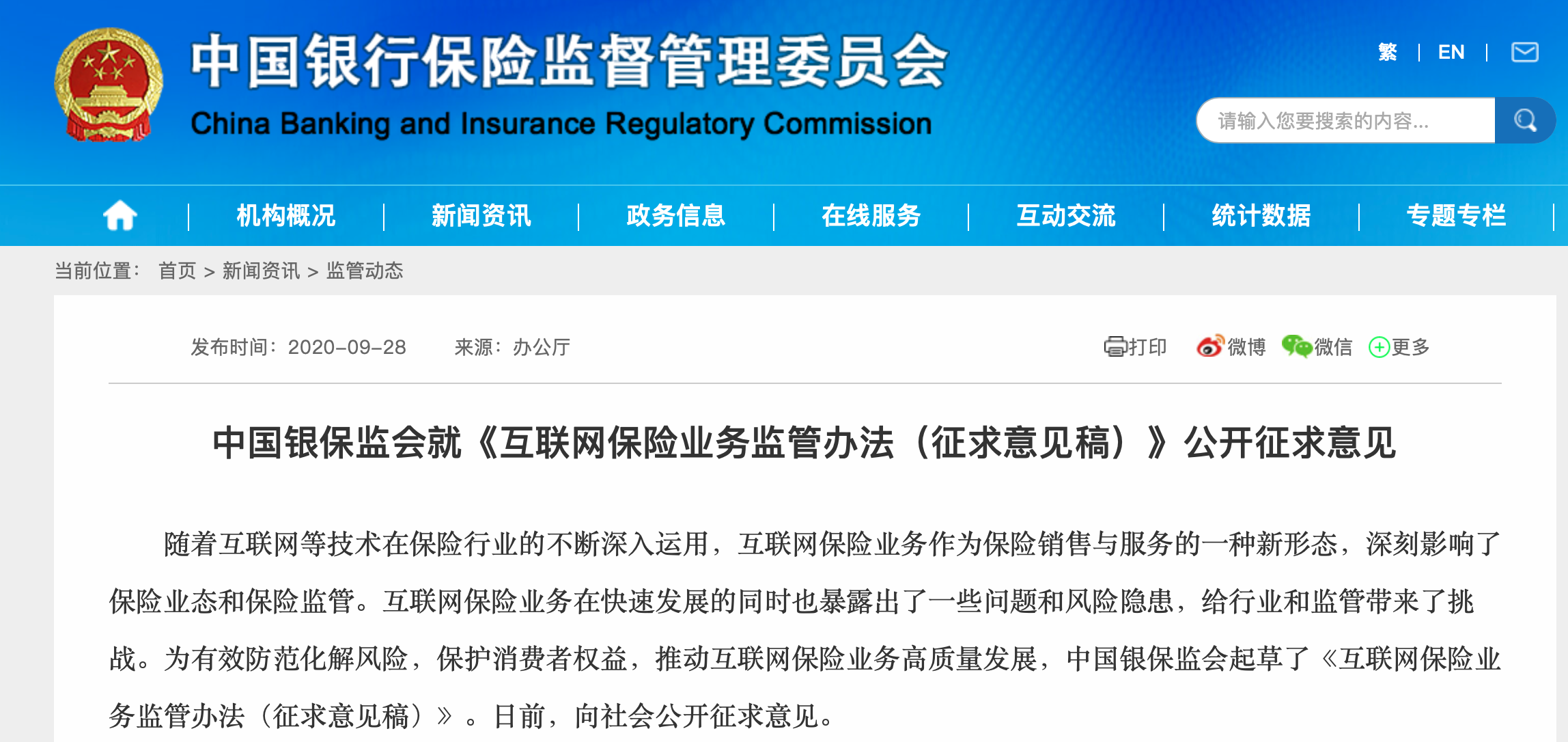 在日常生活中,朋友圈、短视频、各种群、公众号常常遇到保险营销,这种情况将迎来新规,以后朋友圈卖保险将需要获得授权。9月28日起,中国银保监会就《互联网保险业务监管办法(征求意见稿)》(简称《办法》)公开征求意见。实际上,互联网保险业务在快速发展的同时也暴露出了一些问题和风险隐患,给行业和监管带来了挑战,监管新规千呼万唤始出来,那么这次征求意见稿有哪些亮点值得关注呢?第三方与中小险企将何去何从?