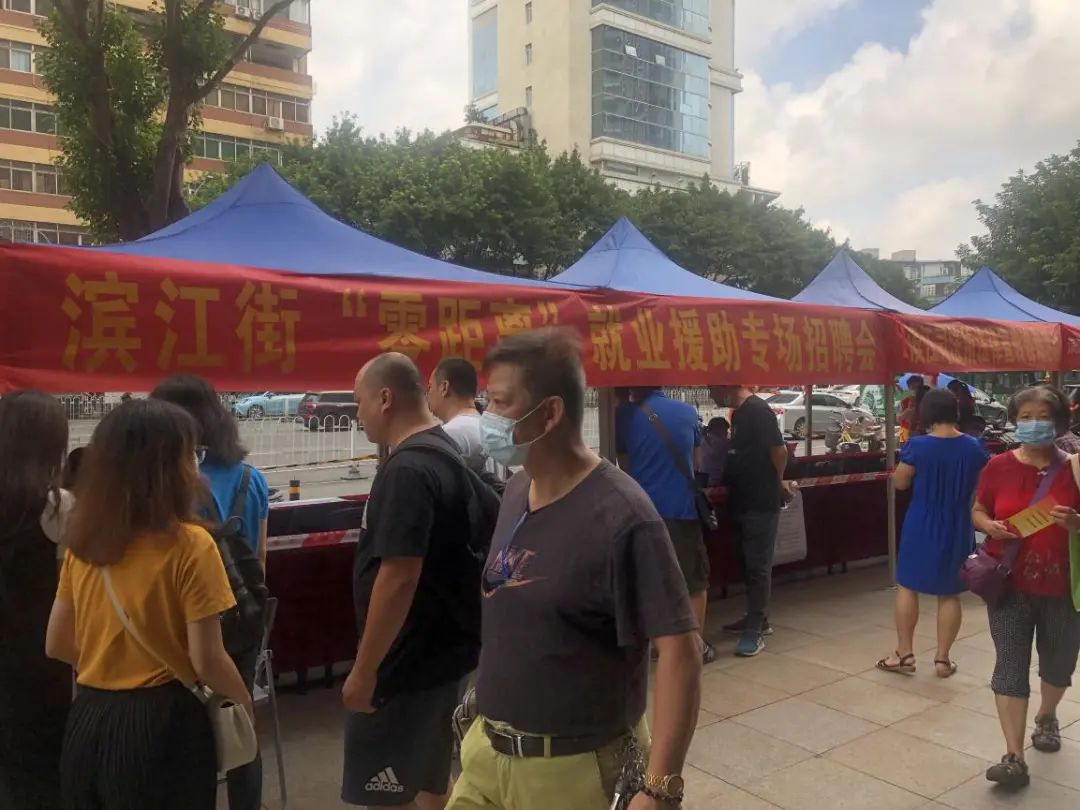 近日,为认真贯彻落实“稳就业保民生”工作部署,滨江街在益丰广场举办“零距离”就业援助专场招聘会,为疫情期间的企业与求职者之间搭建供需对接平台,为滨江街退伍军人、就业困难人员、高校毕业生、残疾人、失业人员等群体提供及时有效的就业帮扶服务。
