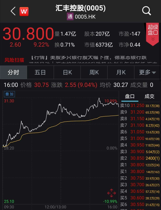 9月28日,汇丰控股(0005.HK)股价大涨,盘中一度涨超10%,截至收盘,上涨9.22%,股价突破了30港元/股。汇丰此次股价大涨正好在平安增持之后,在市场人士看来,二者或存在一定关联。