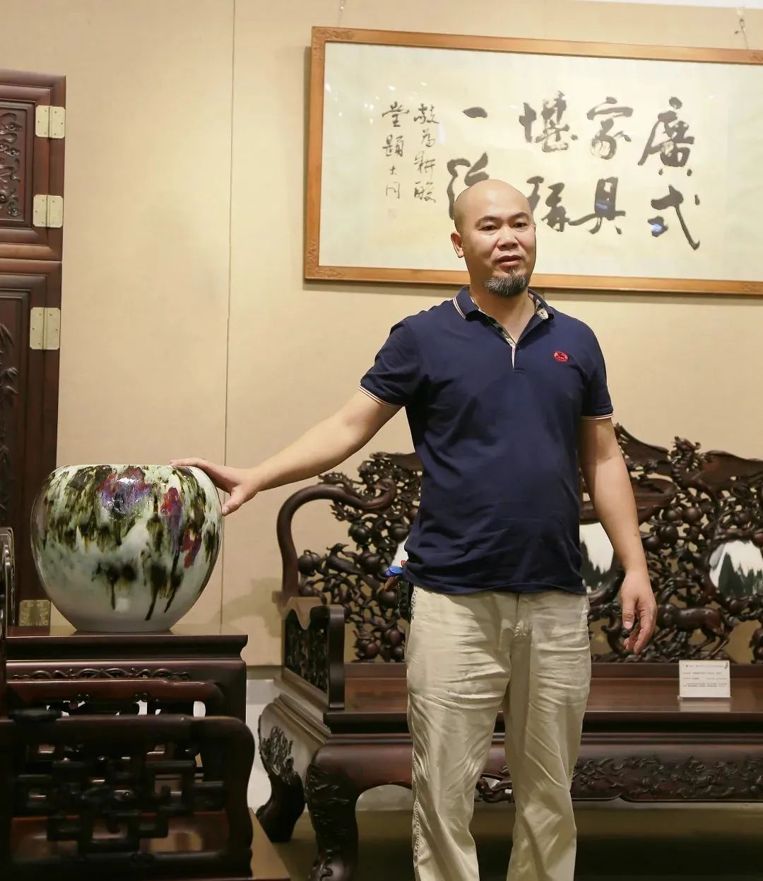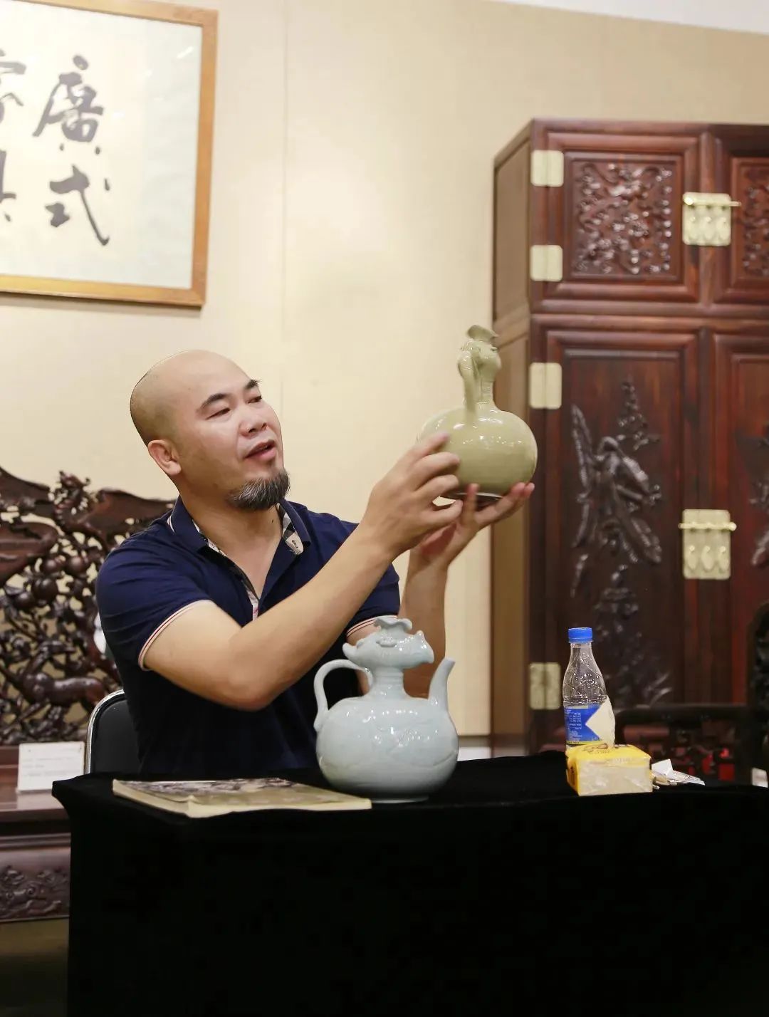 梁向昭老师在介绍西村窑作品