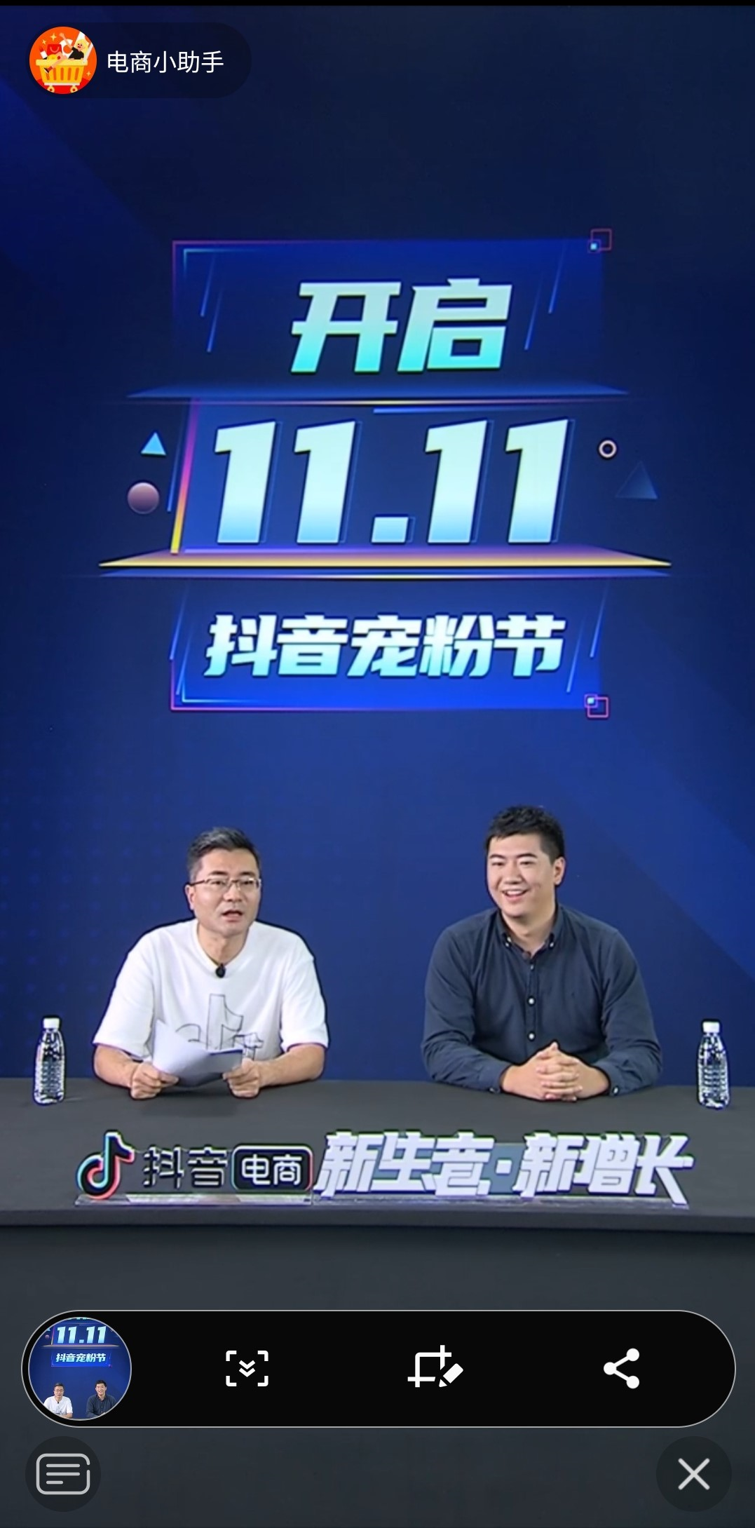 9月28日抖音举办以“新生意,新增长”为主题的“11.11抖音宠粉节”商家大会,此次发布会首次以竖屏原生直播形式呈现。在内容电商的新趋势下,抖音电商宣布产品全面升级,并将针对“11.11抖音宠粉节”推出一系列宠粉玩法,打造真福利的电商回馈节,为商家和消费者共同带来一场内容丰富、玩法新颖、超值钜惠的11.11。
