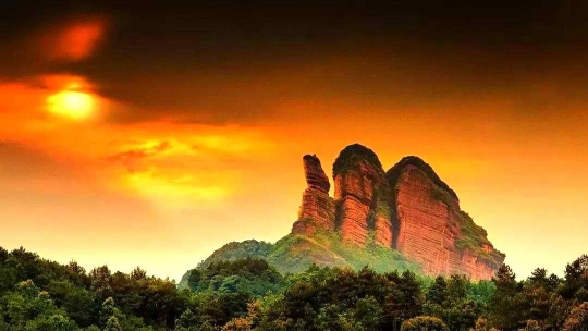 丹霞山是世界“丹霞地貌”命名地。由680多座顶平、身陡、麓缓的红色砂砾岩石构成,“色如渥丹,灿若明霞”,以赤壁丹崖为特色。据地质学家研究表明,在世界已发现1200多处丹霞地貌中发育最典型、类型最齐全、造型最丰富的丹霞地貌集中分布区。