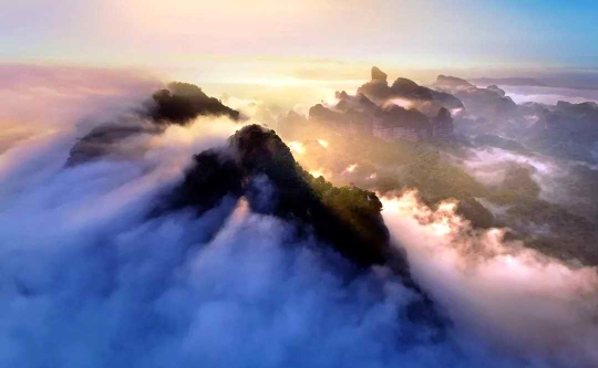 云雾缭绕,如梦如幻,每逢入秋,韶关各地频现的云海都会成为摄影师的宠儿。其中,丹霞山又称中国红石公园,是广东省面积最大的风景区、以丹霞地貌景观为主的风景区和世界自然遗产地。
