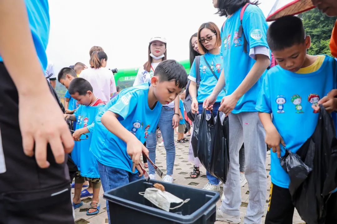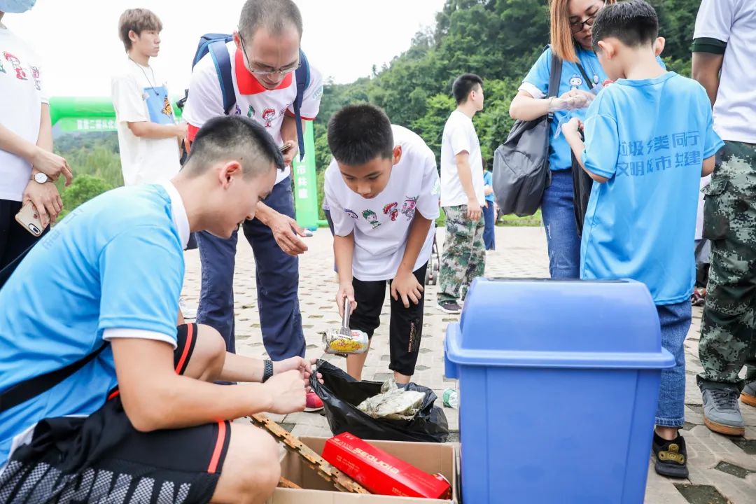 ▲徒步环节结束后,所有家庭都将收集的一袋袋垃圾带回起点处的垃圾分类点进行分类投放。