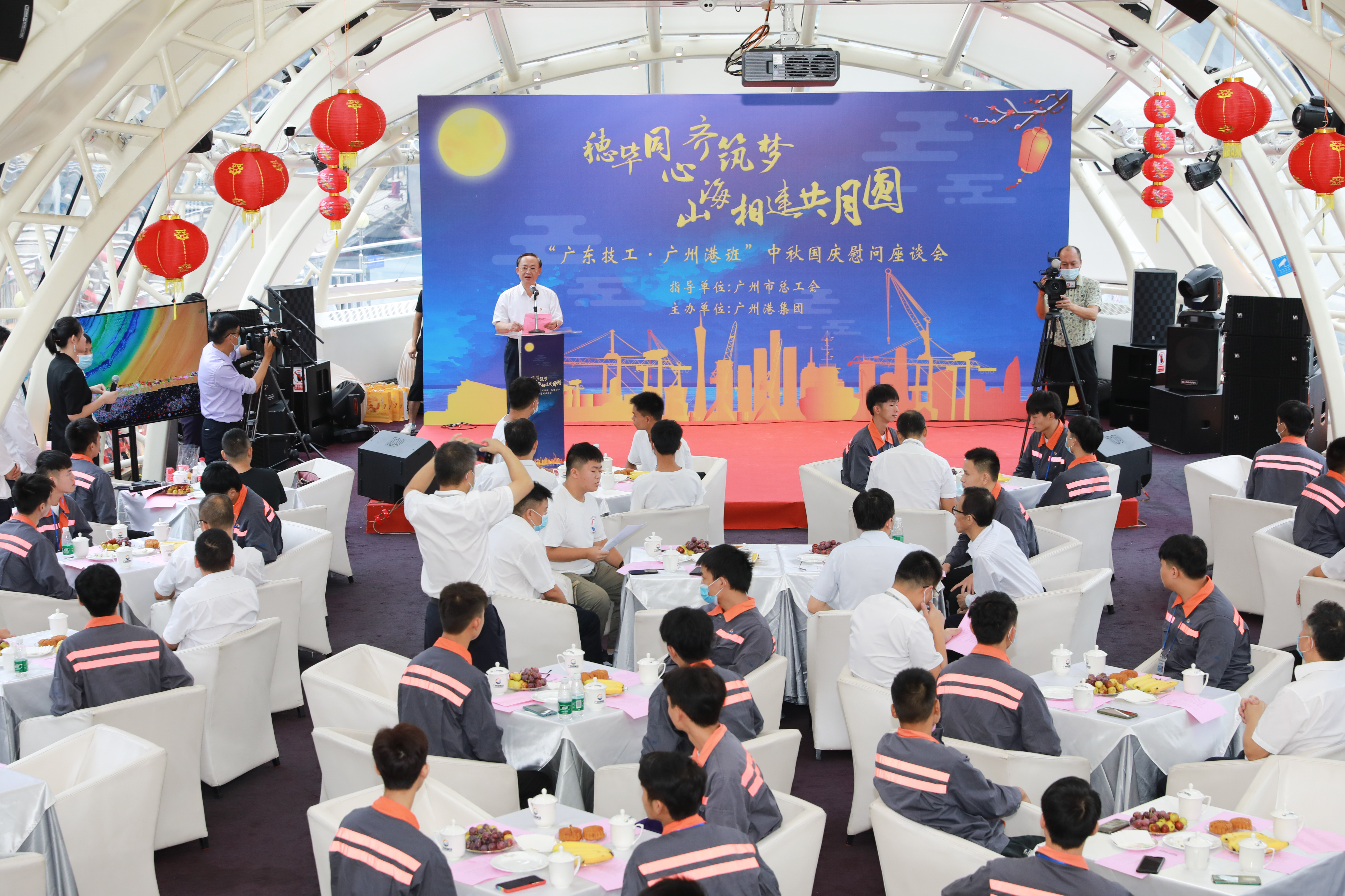 9月28日,广州港集团在珠江游船上召开“广东技工·广州港班”在穗学生中秋慰问座谈会。来自毕节的女孩吴嫣然说,因为广州和毕节两座城市的情谊,感觉能够到广州港工作,也是在为建设家乡出力。