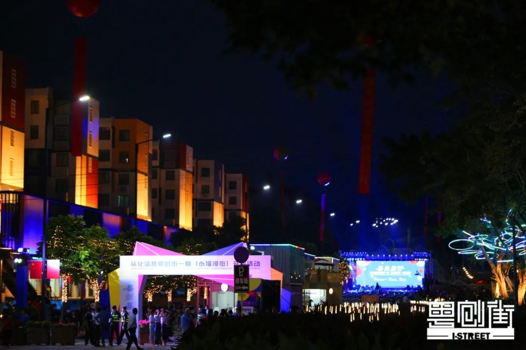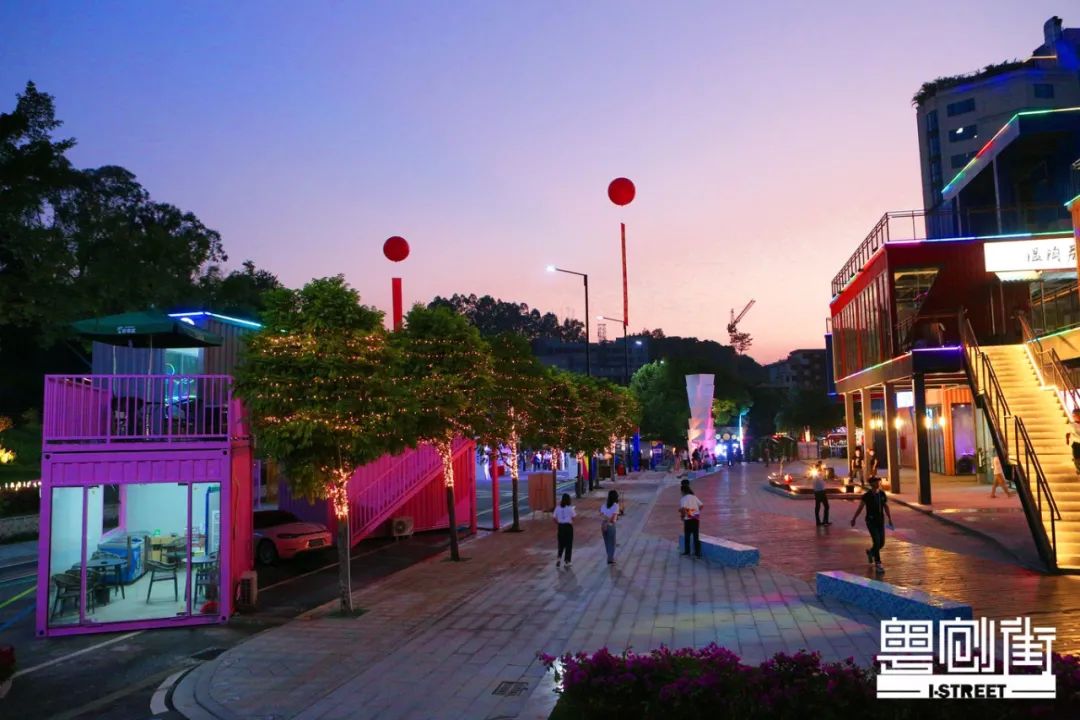 从细处看,文创集装箱、创意小店沿街错落有致地分布,为年轻人消费提供了空间。从整体的布局来看,酒吧街、长亨欢乐世界、婚俗文化馆、党群服务中心、双创基地、直播电商街等项目在永福漫街落地,美食、美文、美器、美服、美酒、美茶等商业业态与创业团队集聚。作为粤创街的核心启动区,永福漫街已成为集创新、时尚、休闲、娱乐为一体的温泉活力街区,并成为广州夜间经济经济地标之一。