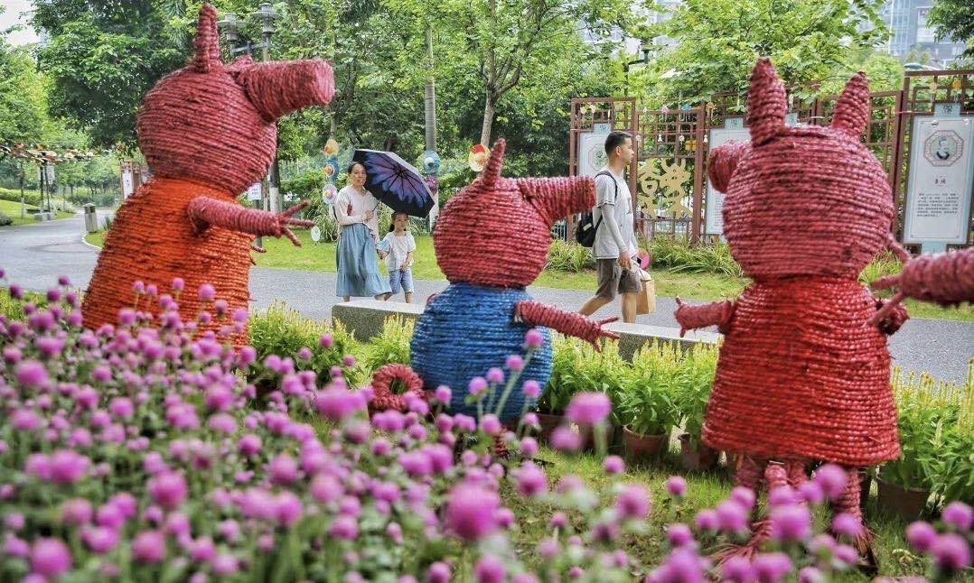 在动物世界主题里,游客们可以观赏憨态可掬的大熊猫、高挑优雅的火烈鸟、功夫青蛙三兄弟,还有各显神通的十二生肖等。