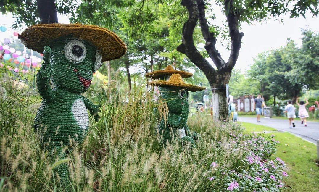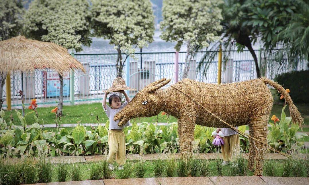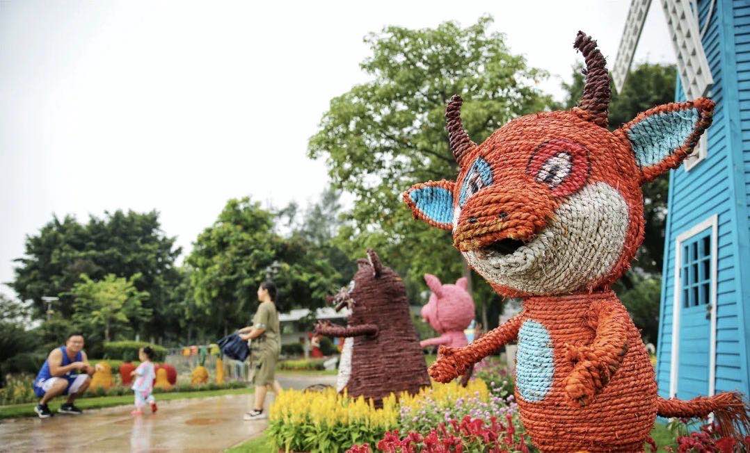 稻草,是农业生产的衍生物,不仅和人们的生产生活息息相关,还派生出丰富多彩的民间工艺品。中秋国庆双节来临之际,白云儿童公园将稻草编织成各种创意造型,让城市的游客亲近自然,了解农耕,找回儿时快乐的童趣回忆,感受“人与自然和谐共处”的和谐景观。