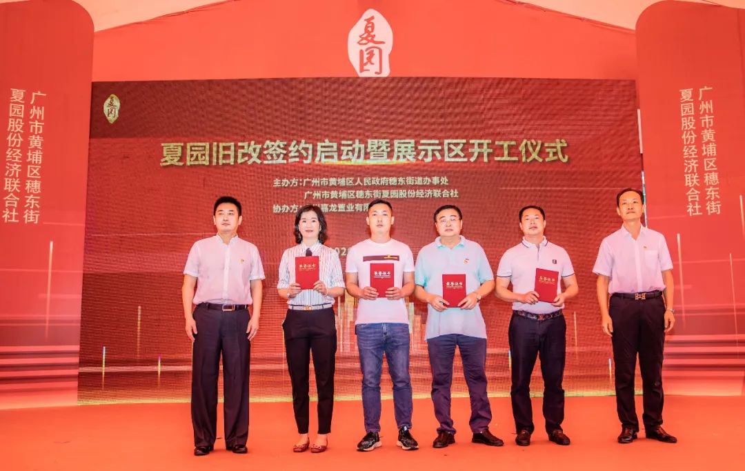 9月28日上午,黄埔区穗东街夏园旧改签约启动暨展示区开工仪式如期而至。黄埔区穗东街党工委书记邹志強,街道工委副书记、办事处主任陆辉,夏园社区党委第一书记孔祥来,夏园社区党委副书记、居委会主任、经联社董事长徐柱林,广州嘉龙置业有限公司代表等嘉宾出席了动工仪式,共同见证这一历史性时刻。这次开工仪式标志着穗东夏园社区旧村改造“驶入快车道”。