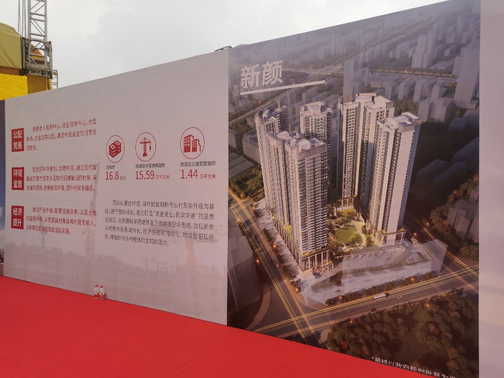 现场介绍显示,新市头更新项目总投资16.8亿元,改造后计容建筑面积15.59万平方米,改造后公建配套面积1.44万平方米,包括老人服务中心、社区服务中心、文化站、大型商场等配套。