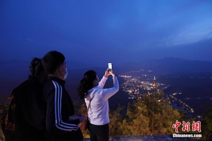 ↑资料图:游客在北京古北水镇景区司马台长城夜游。 中新社记者 苏丹 摄