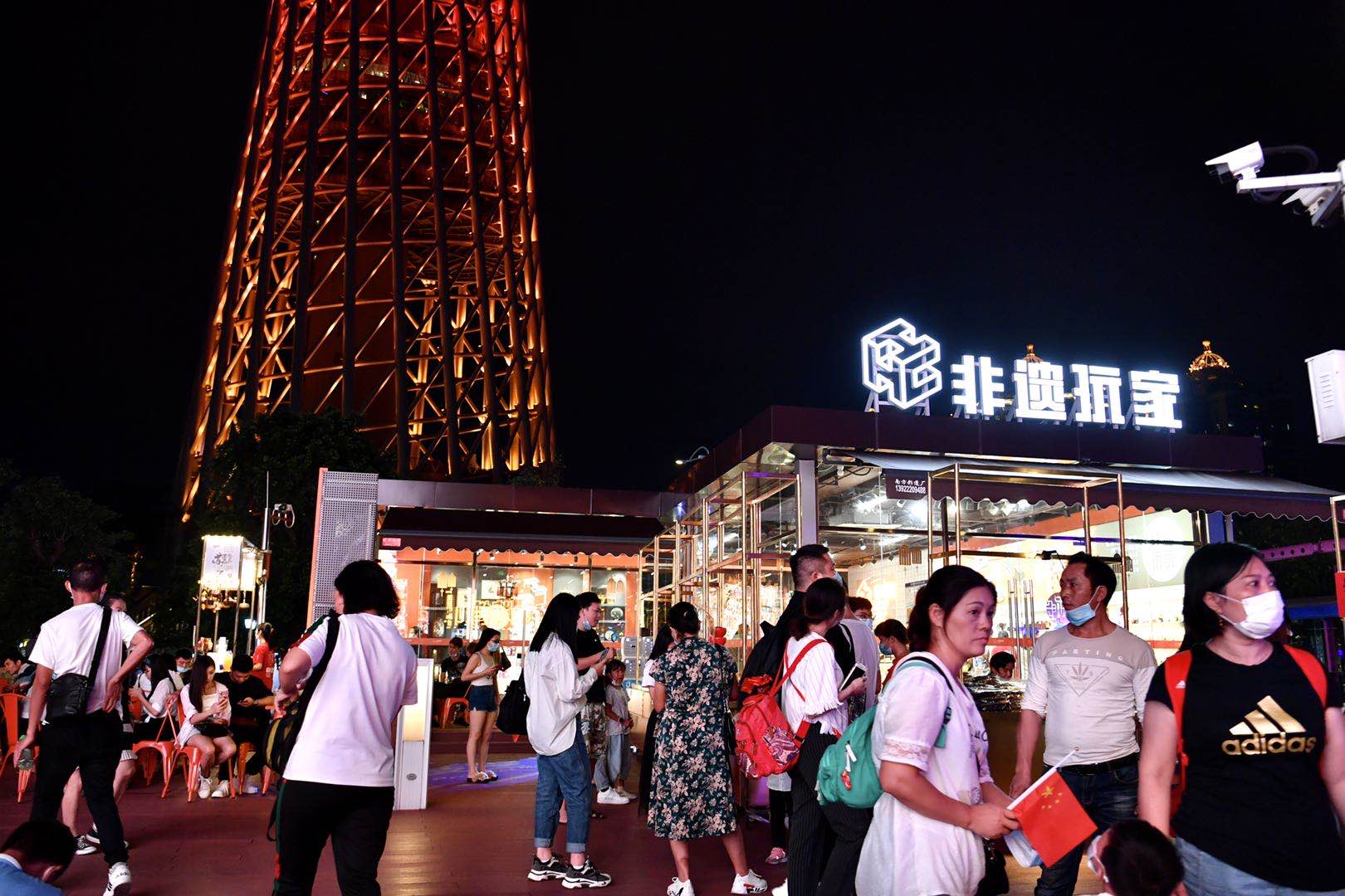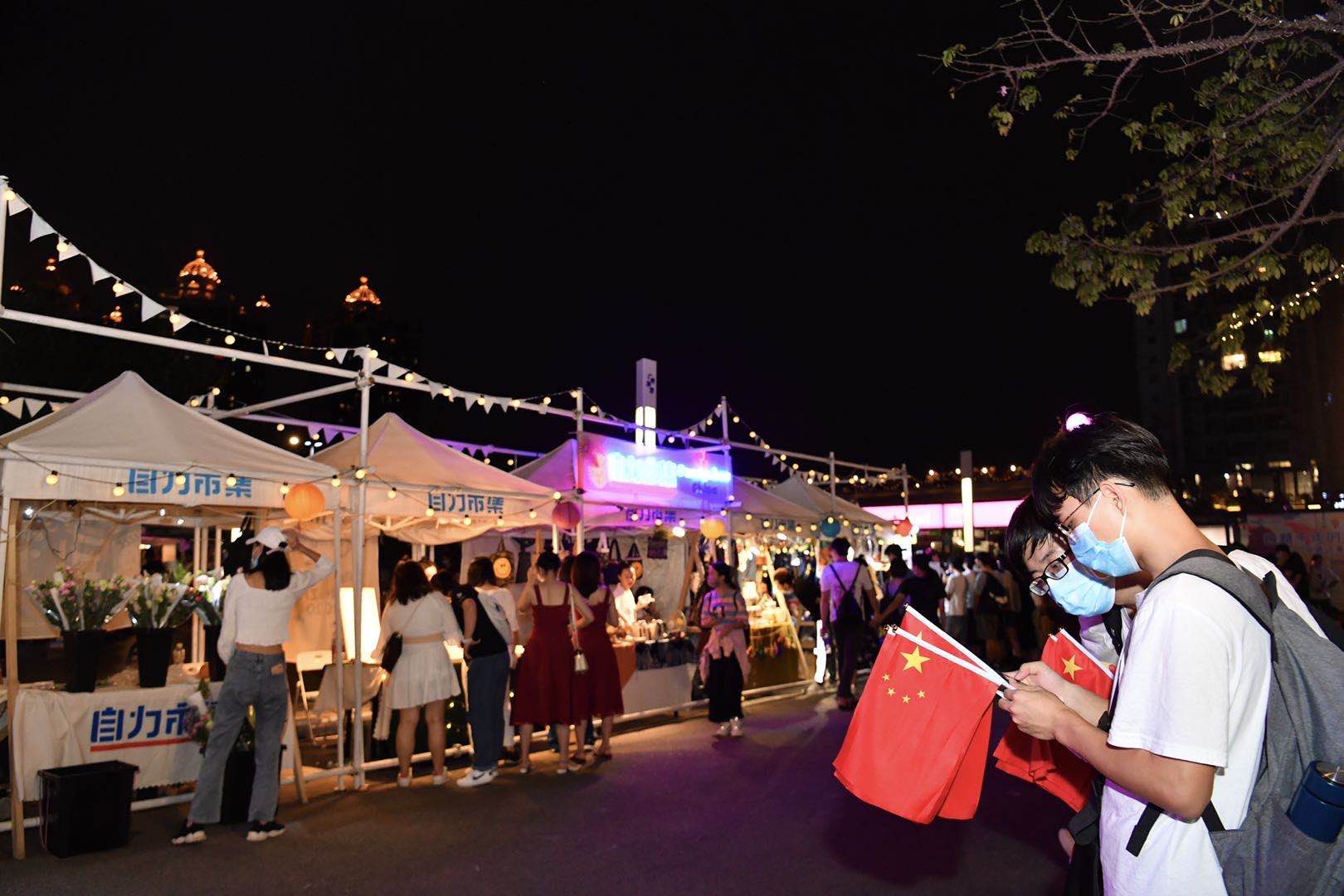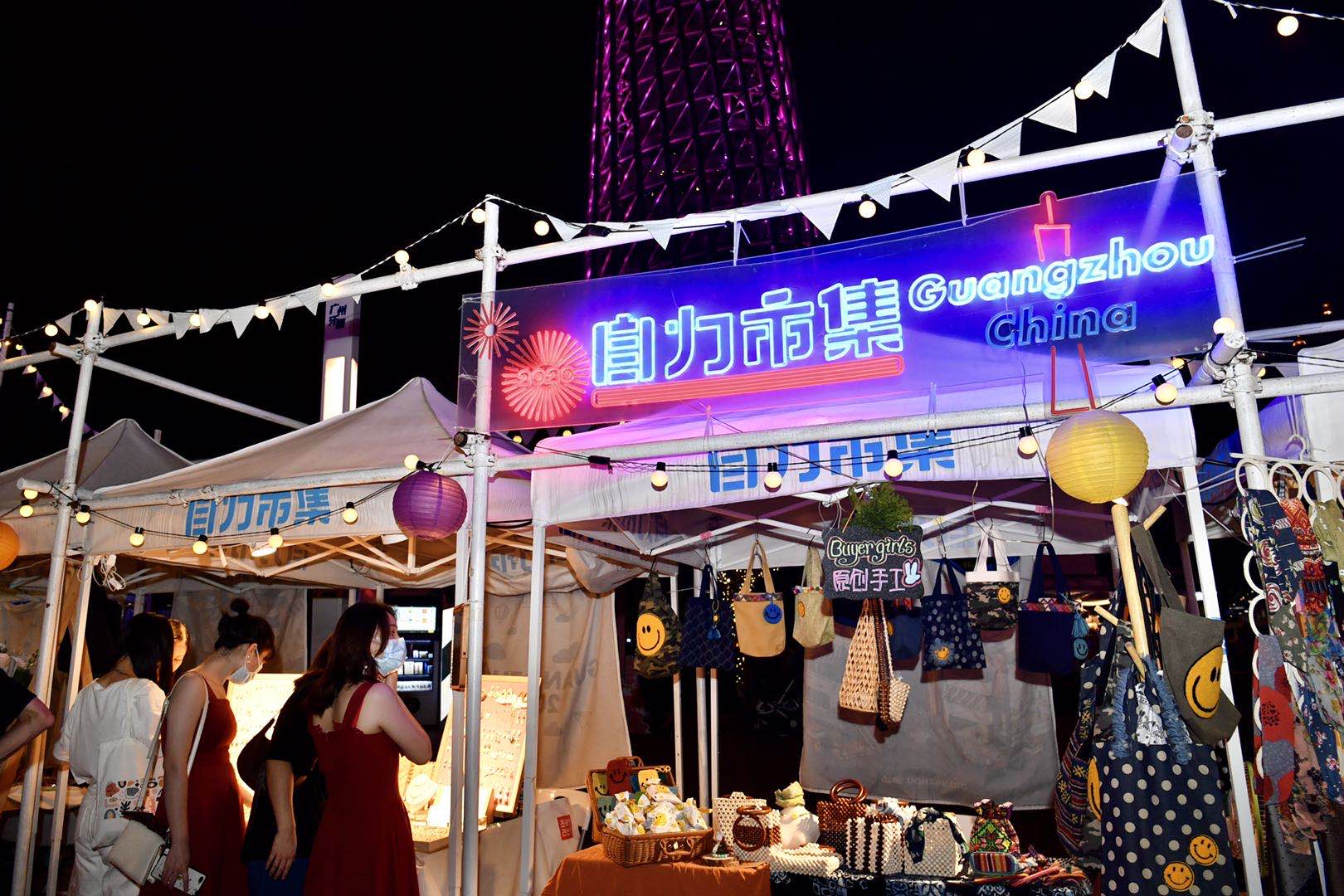 10月1日晚间七时许,众多市民和游客涌向广州塔,看非遗,逛潮墟C·PARTY。