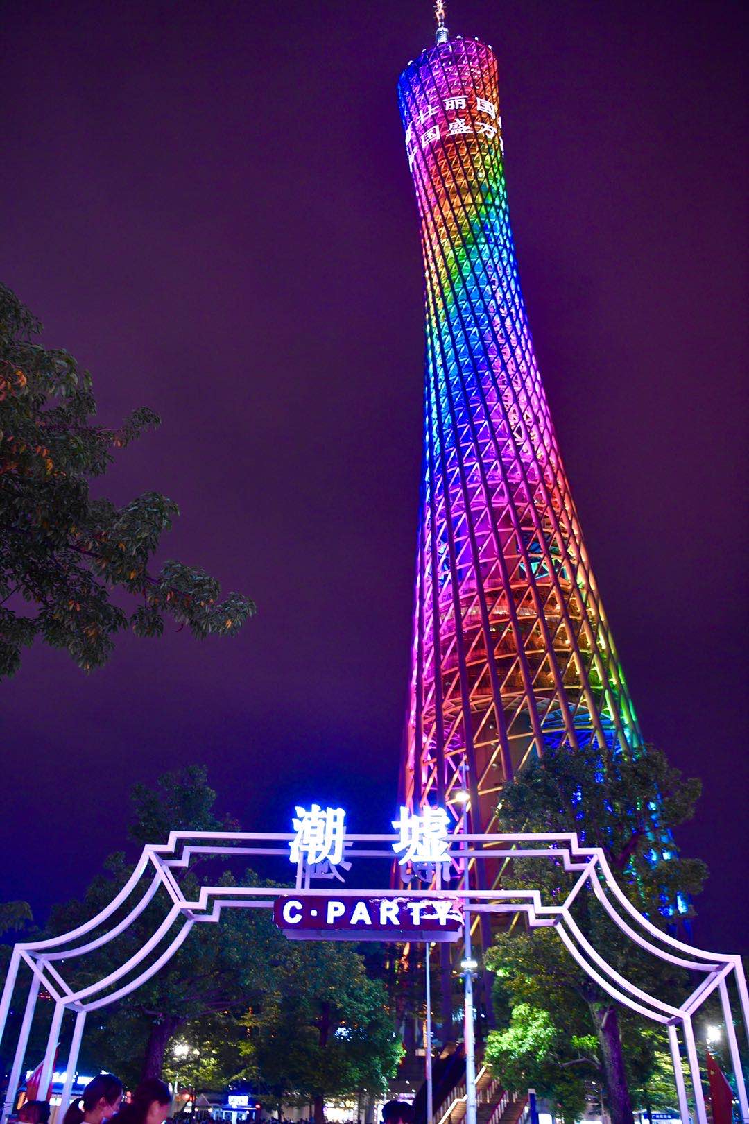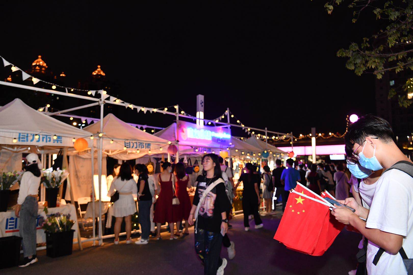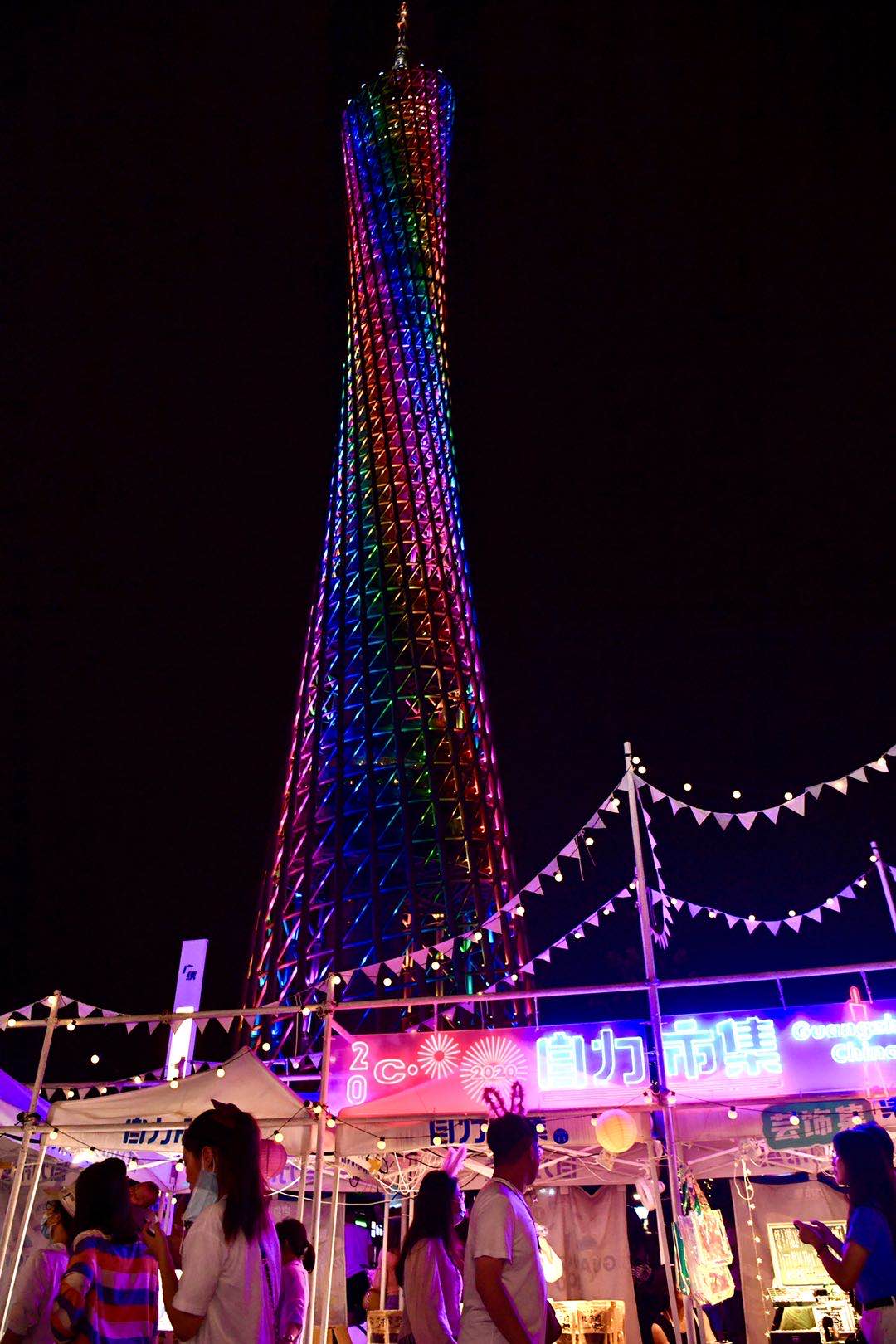10月1日晚间七时许,众多市民和游客涌向广州塔,看非遗,逛潮墟C·PARTY。