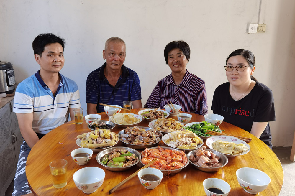这次趁着长假,他提前一天就往家赶,想把除夕夜没吃成的团圆饭给补上。看到儿子回家,老人非常高兴,问工作,问身体,说不完的话。下午5时许,一家人早早地就开始吃团圆饭,十多个菜,何昌颖吃了很多,他说,“都是家的味道!”