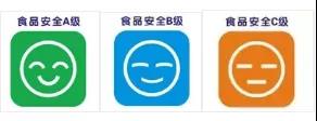餐饮服务单位的食品安全等级划分为三个等级:A级(绿色笑脸,代表食品安全状况良好)、B级(蓝色笑脸,代表食品安全状况中等)、C级(黄色笑脸,代表食品安全状况一般),其中B、C级由区市场监管局组织评定,A级单位由市市场监管局组织评定。