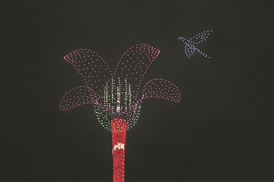 沿着珠江一路向东,从海珠桥、江湾桥一路到猎德桥、广州塔,珠江游船和无人机编队,联袂“点亮”一江两岸,为市民献上一场视觉盛宴。晚上7时半,无人机编队徐徐升空,1000架无人机组成的编队呈献出8分钟的光影表演,成为整晚最吸睛的表演之一。