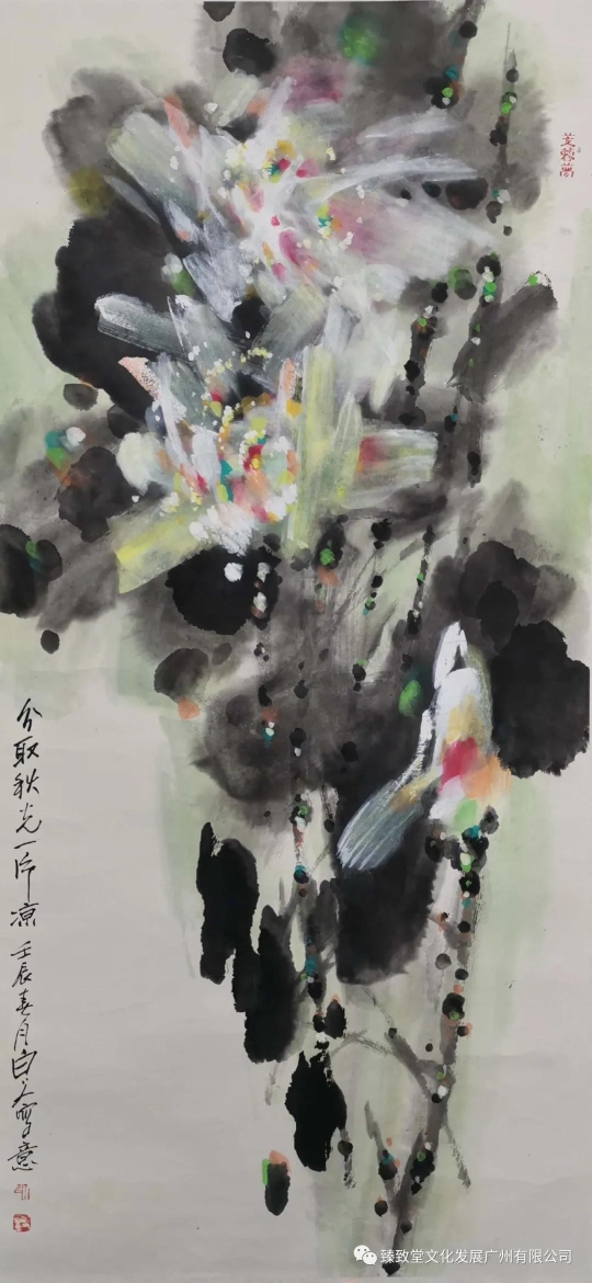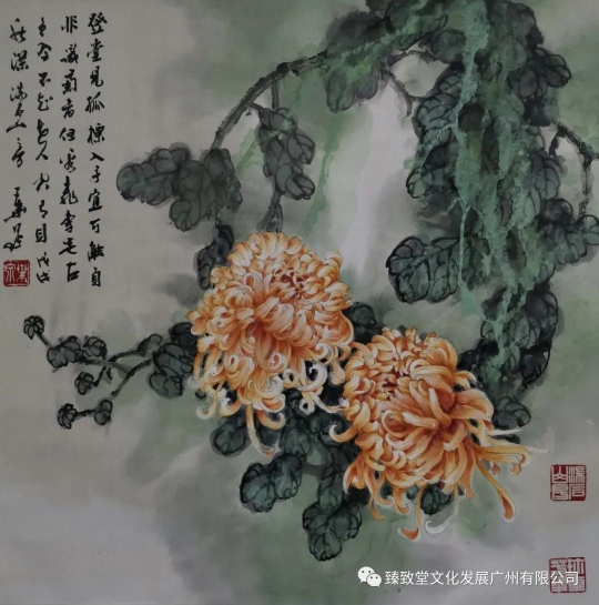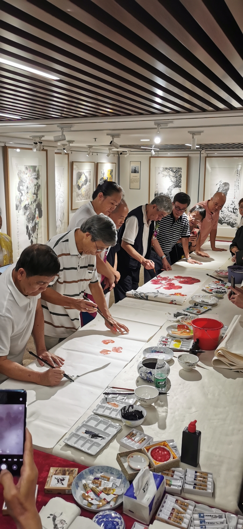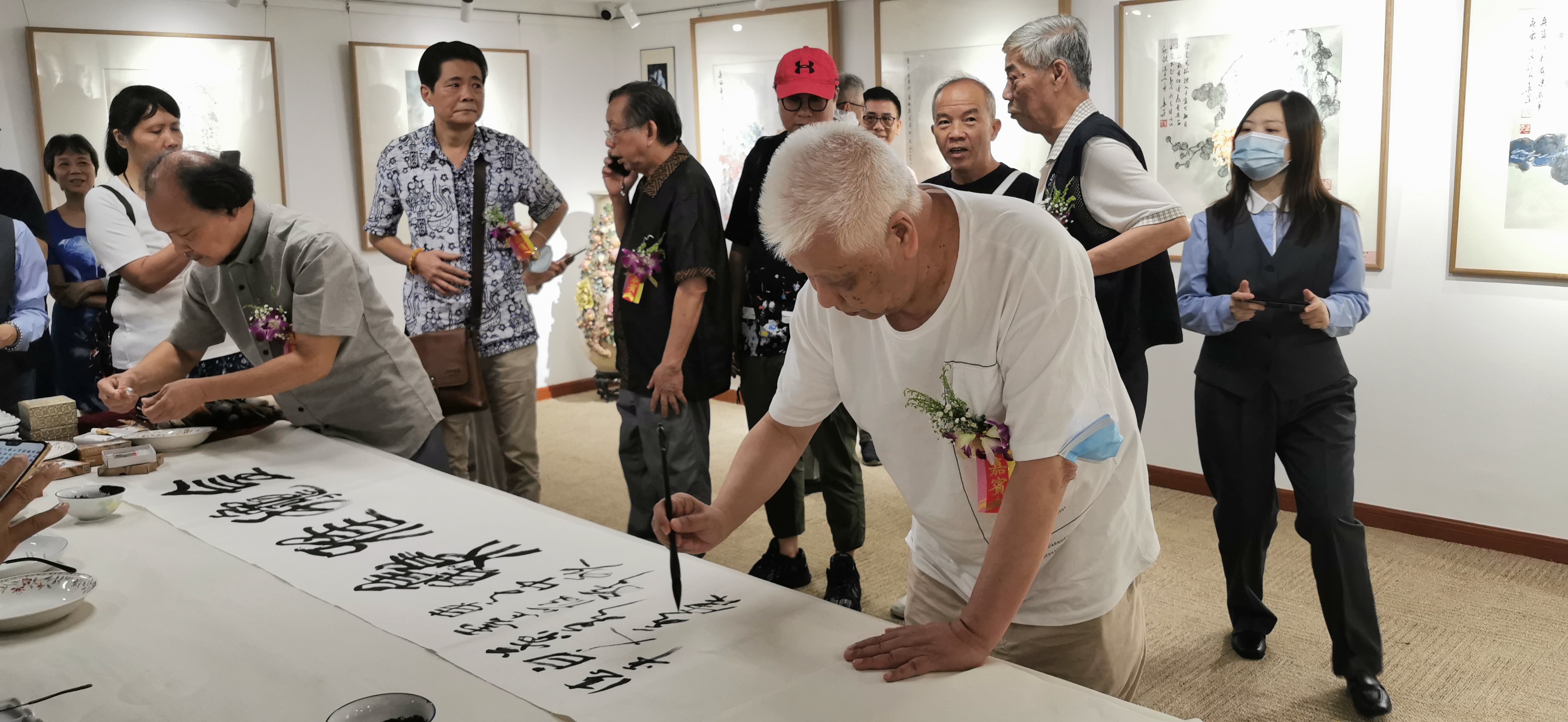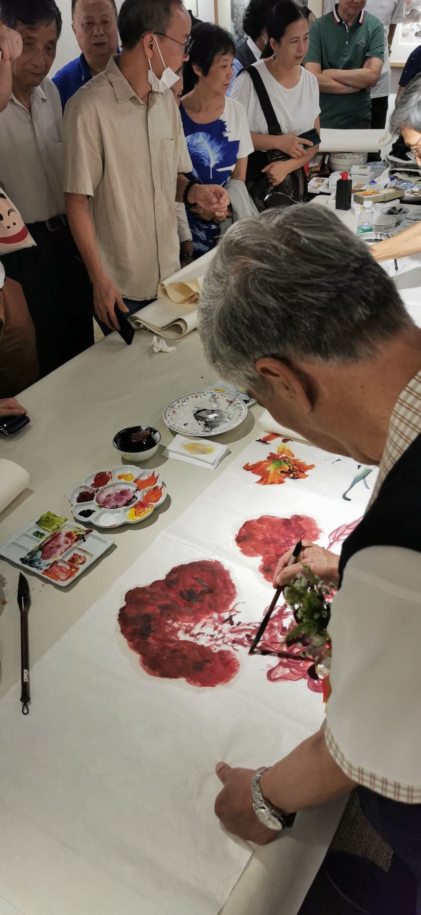 9月29日下午,臻致堂礼请“羊城九老”,展出他们的佳作并作挥毫,书画艺术家毫不吝啬毕生追求的笔墨情才,许固令题图题、招炽挺画菊、卢德平画梅、陈永锵画鸡冠花……