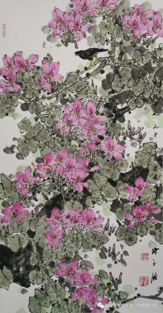 陈永锵是一位老广,发言时笑道,要是把自己的话转为普通话就不地道了。谈及创作,他不同意“创作”一词,自己的从没有刻意去找“创作”的主题,画作的元素皆提炼于生活,自己年轻时也是速写本不离手,“没有写生就没有我陈永锵!”,可见他的一幅满构图羊蹄甲造型严谨,花冠描绘细腻精巧,枝叶郁葱,但是繁而不乱,这都与深厚的写生功底有关。而陈永锵更认为中国水墨画应该有诗性,画家要有文学的休养、思想,他作画的同时也经常作诗相辅,往往词句间就生动地构筑画面,一幅画面就能在观者脑中形成动态的形象,与他笔下的画面相得益彰,正是这样的诗性,才能让陈金章提炼出源于生活高于生活的主题。