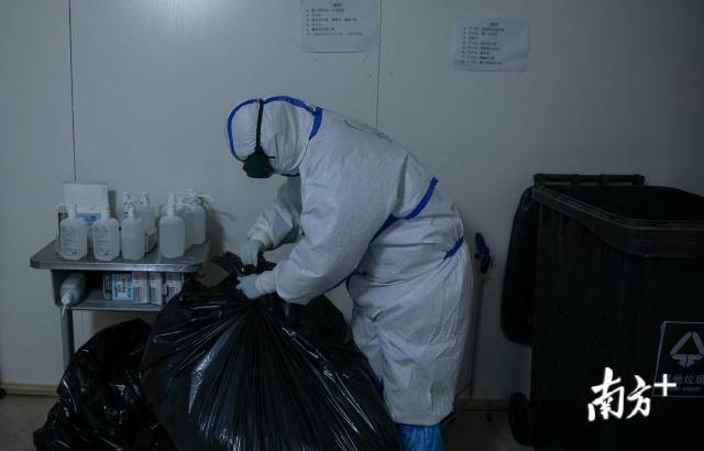 2月24日晚,废弃的防护服堆满垃圾桶,刘家怡将它整理打包。