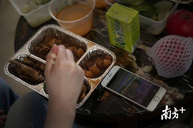 2月23日,刘家怡和同事在驻地吃晚餐,半个月的援武汉生活,刘家怡感觉自己身体最明显的变化是——长胖了。