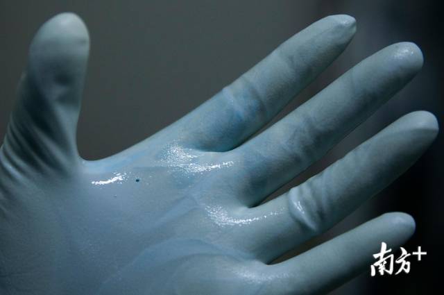 2月24日,在岗位上刘家怡发现手套破了一个小口,这种情况存在感染的风险。