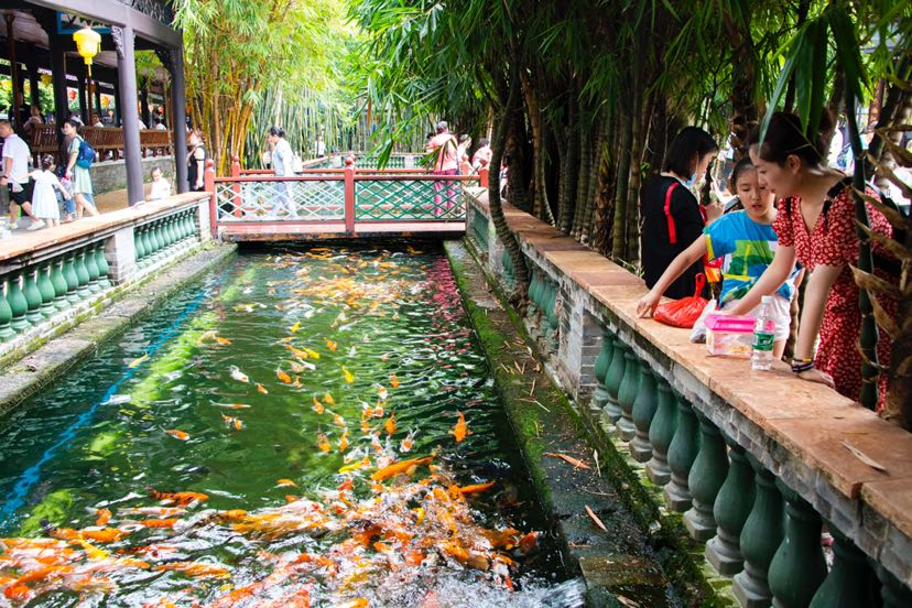 10月1日,記者走訪寶墨園旅遊區發現,景區儼然一座兒童水樂園,捉小魚、坐遊船、餵錦鯉等項目備受親子遊客熱捧。