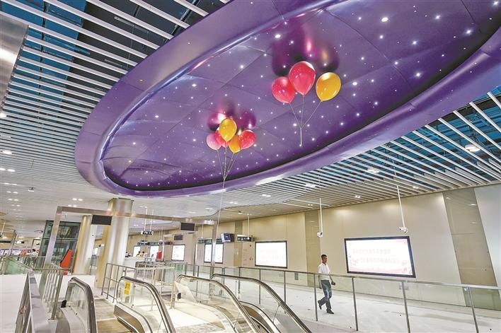 地铁4号线三期观澜湖站艺术吊顶。读特记者 刘羽洁 温涛 摄