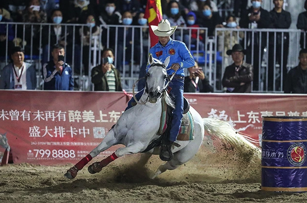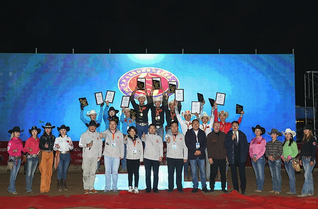 在前一天团体赛的角逐中,14支参赛队每队3名骑手上场,在场上完成3个障碍桶绕行最后回到出发点,用时最短的队获胜。与个人赛不同,团体赛是一轮定胜负,失误就意味着将机会拱手送给别人,因此所有参赛骑手内心无形中都增加了额外的紧张情绪。不过,比赛在第三个上场的青岛宝湖马术小镇队完赛后就失去悬念,率先登场的金青格乐图开局就绕出了16.075秒的成绩,随后乌恩奇又跑出了16.281秒的成绩,最后登场的吾音巴特更是跑出了15.988秒,三人无论是绕桶角度和动作拿捏都是其他队无法比拟的,最终毫无悬念地摘得团体冠军。