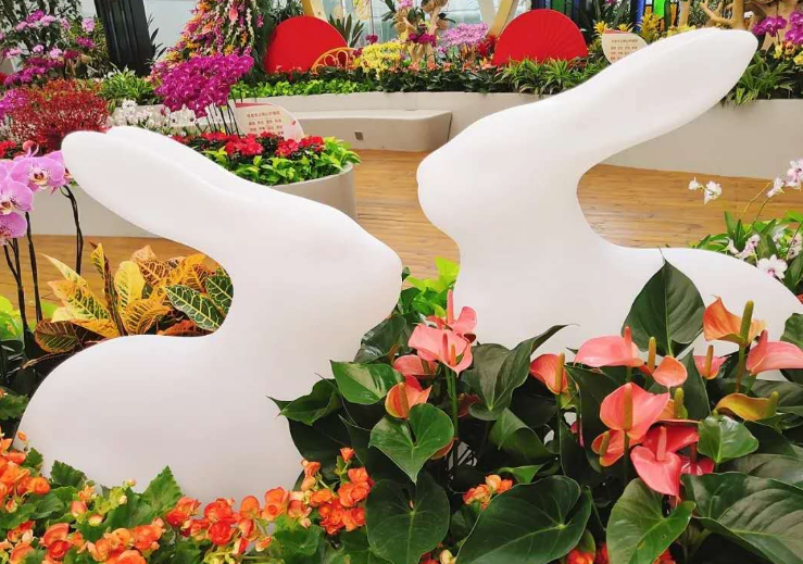 玉兔、鲜花等具有代表元素的装置