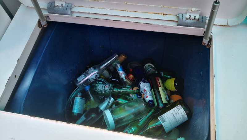 鹏盛社区鹏盛年华小区的垃圾投放箱设置在宣传栏的对面,由于箱体十分干净整洁,记者一度没有发现。在玻璃制品垃圾箱里,存放了大约半箱的各种酒瓶、罐头瓶,还没有人过来收;金属、塑料、纸制品箱里,也放了大半箱的各种塑料包装和泡沫盒子,没有混杂其他垃圾。投放的标准程度堪称“教科书式”的。