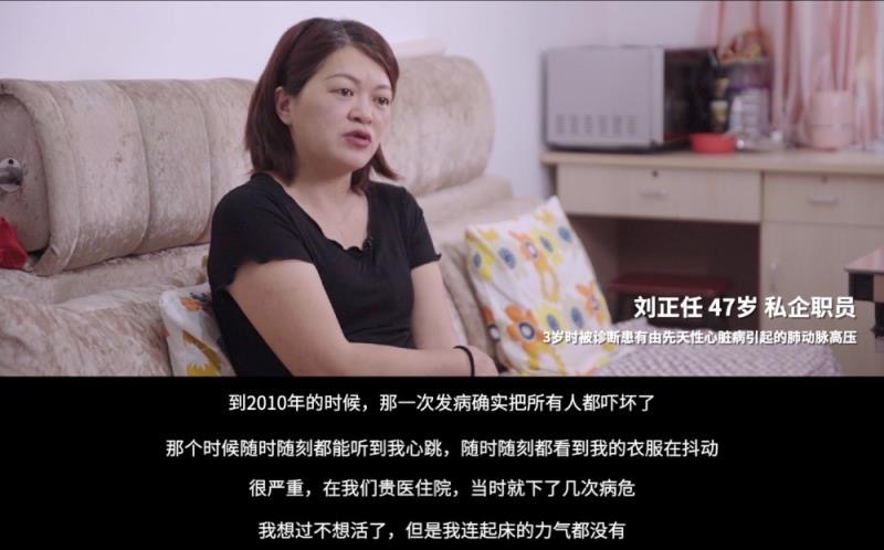 47岁的刘正任在3岁时被诊断患有由先天性心脏病引起的肺动脉高压。2010年发病开始,刘正任的噩梦就开始了,她一直到2017年都瘫痪在床,生活无法自理。刘正任回想起瘫痪在床的七年表示“那时候我不是没有想过死,但我连床也没有办法自己下”