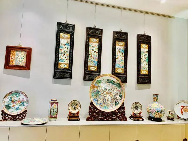 此外,随着时代的发展,审美风格的变化,广彩在题材、图样、技法等方面都发生了一定改变。现代广彩开始尝试不同题材,与当下的生活结合,例如抗疫期间,创作以医务工作者为题材的广彩瓷盘;借鉴油画、瓷板画等其他画派;在构图上运用留白、写意,使层次更加丰富。