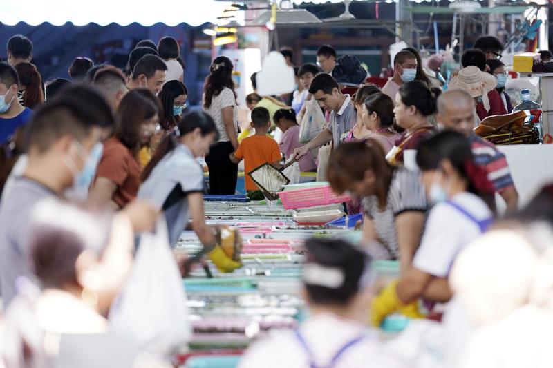 今年黄金周叠加国庆和中秋两个节日,也带动南沙区的商贸消费,万顷沙十四涌水产中心、万达广场等几大商贸市场迎来大量客流。