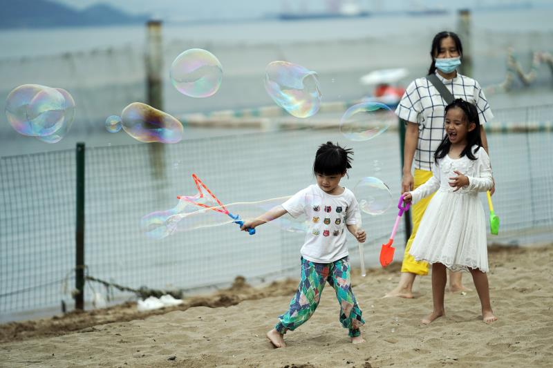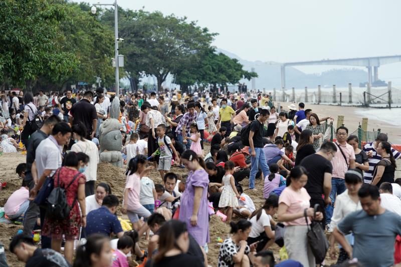 黄金周首日,南沙天后宫旅游景区人头攒动,许多游客携带一家老小到此放松休闲。景区附近的沙滩成了小朋友们的乐园,带着小铲子挖沙子、堆城堡,精力十足。在不远处的大角山海滨公园,不少游客正悠闲地踩着自行车,远眺观赏南沙海景。