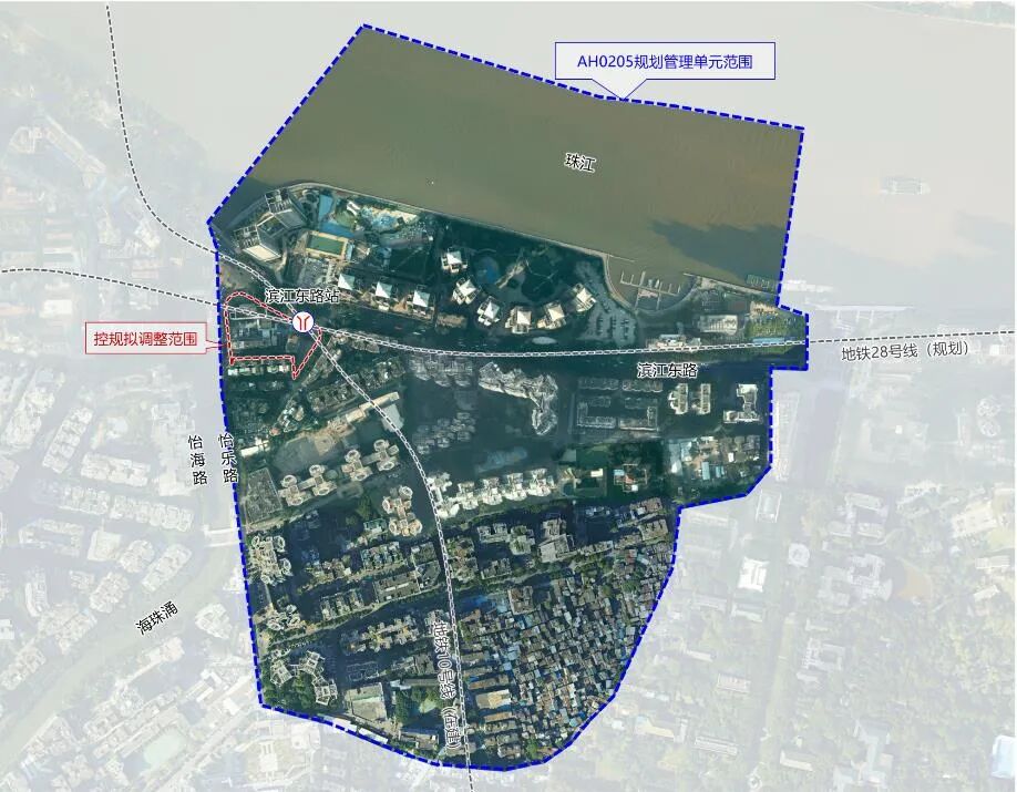 为推进地铁10号线滨江东路站轨道工程建设,落实拆迁复建需求,推进城市空间品质提升并促进公共服务设施扩容提质,广州地铁集团有限公司申请对海珠区AH0205规划管理单元控制性详细规划进行调整。