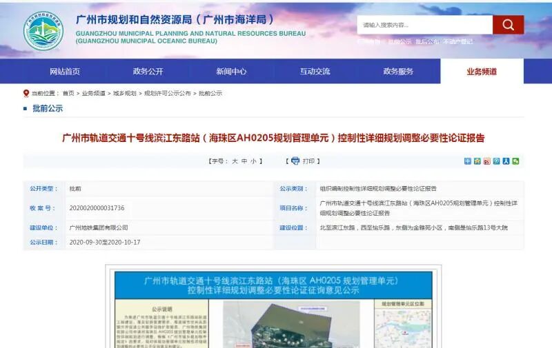 近日,广州市轨道交通十号线滨江东路站(海珠区AH0205规划管理单元)控制性详细规划必要性论证征询意见开始公示。