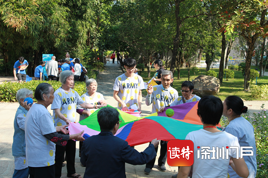2017年重阳节,广州市老人院组织老年人在云山叠翠游戏点参加趣味游戏活动