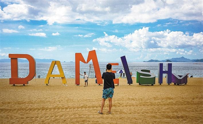 重修后的大梅沙海滨公园沙滩上,“DAMEISHA”拼音字母已成为游客新的“打卡点”。黄顺 摄