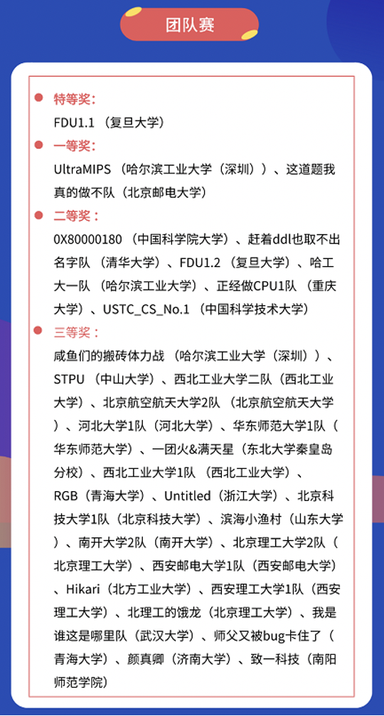 在实验与创新实践教育中心仇洁婷、薛睿两位老师指导下,哈工大(深圳)参赛队员利用暑假时间完成了CPU的设计、测试、优化,搭建SOC等工作。经过近2个月的紧张准备和不懈努力,两只队伍分别以初赛性能测试成绩排名第4名、第12名的成绩成功晋级决赛,董云升、何婧两位个人赛参赛者也顺利“闯”入总决赛。哈工大(深圳)参赛队员与晋级总决赛的团队赛31支队伍和个人赛18位同学通过腾讯会议参加了线上全国总决赛,一决高下。