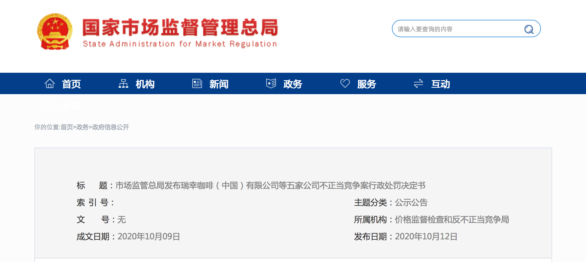 10月12日,市场监管总局发布瑞幸咖啡(中国)有限公司等五家公司不正当竞争案行政处罚决定书。