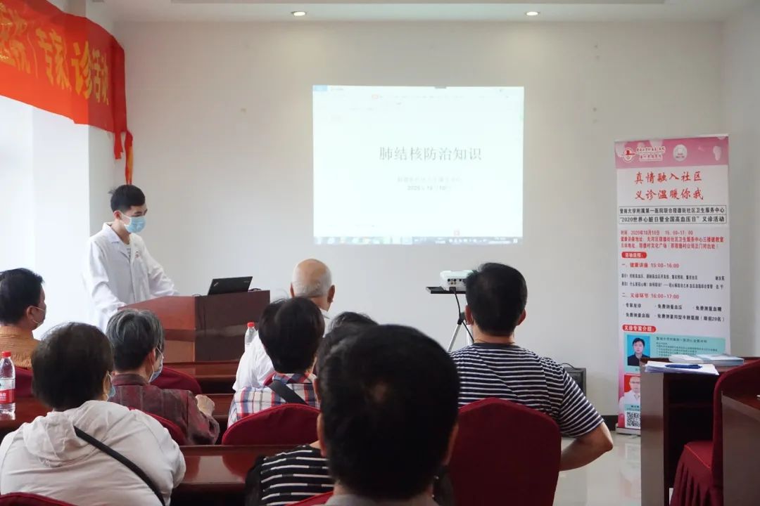 下午3点,猎德街社区卫生服务中心三楼健教室内座无虚席,来参加讲座的居民们早早到场。讲座开始前,猎德街社区卫生服务中心的医生带来了肺结核防治、艾滋病防治等知识。