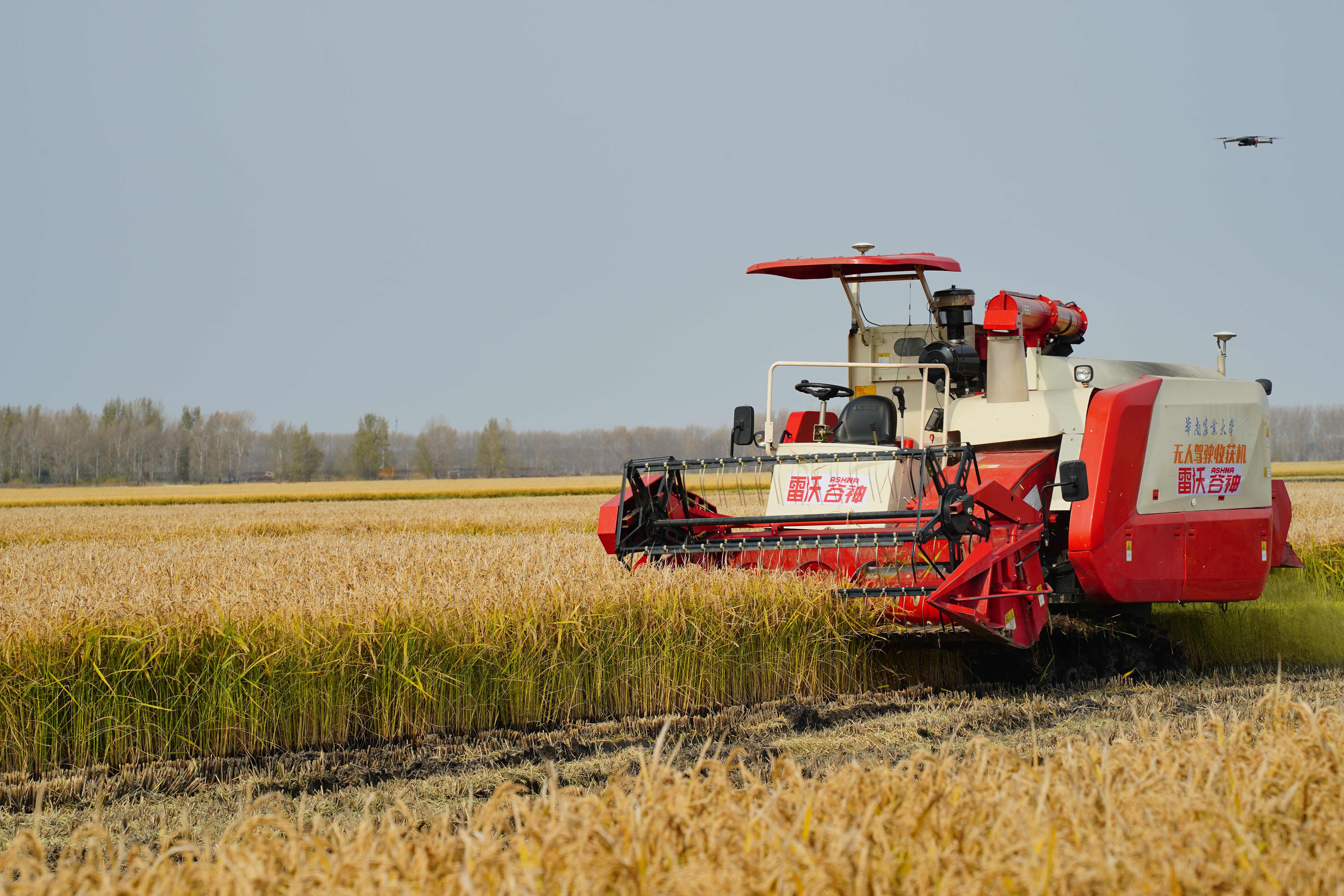 在建三江七星农场,随着指令发出,一台台无人驾驶收割机轰隆隆驶向远处的稻田。借助卫星导航定位收割机匀速直线推进,遇到尽头的田埂自主转向掉头,不一会儿机身仓贮就显示已经装满。此时后方无人驾驶的接粮机“闻讯”赶来,两车默契协同作业,收割机准确地将稻谷转移到运粮机上,大约90秒后运粮机显示已经满仓,很快自主转弯掉头回仓,整个过程全部无人驾驶,一气呵成。